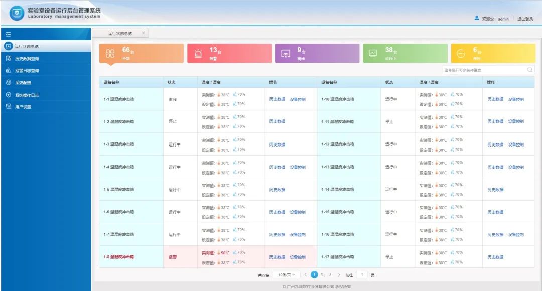 九頂軟件環(huán)境試驗(yàn)設(shè)備監(jiān)控系統(tǒng)可將實(shí)驗(yàn)室各設(shè)備通過接口方式對接后,將設(shè)備數(shù)據(jù)采集、轉(zhuǎn)化、納入到終端軟件,并通過設(shè)備運(yùn)行后臺管理系統(tǒng)進(jìn)行統(tǒng)一管理。